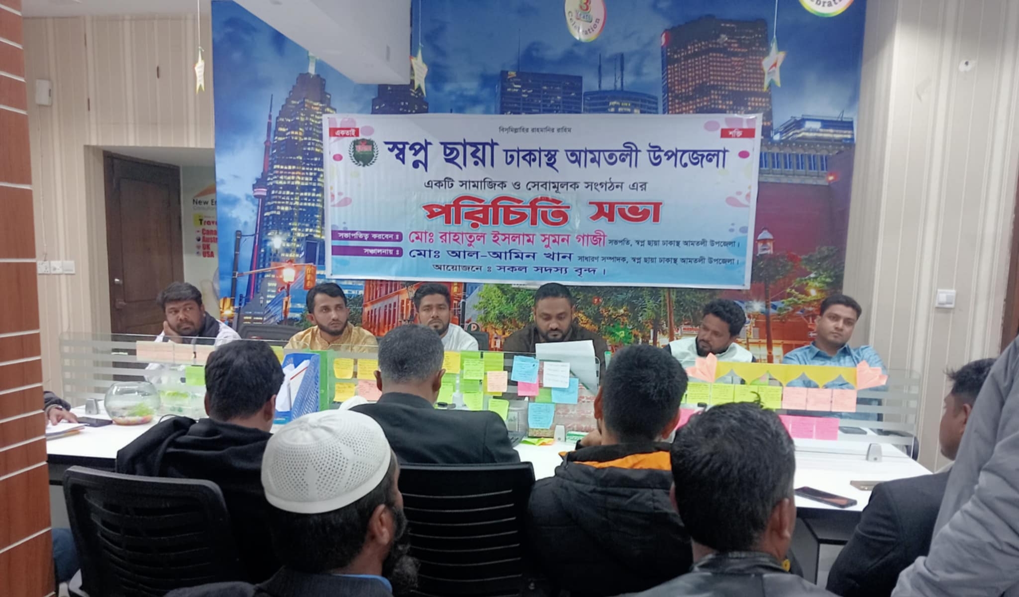 আপন নিউজ অফিসঃ ঢাকাস্থ আমতলী উপজেলা স্বপ্নছায়া সেবামূলক সামাজিক সংগঠনের পরিচিতি সভা অনুষ্ঠিত হয়েছে। শুক্রবার বিকেলে গুলশান ২ শাহাবুদ্দিন মেডিকেল কলেজ হাসপাতাল রোড ১১৩ এ বাসা ১০, বাসভবনে এ পরিচিতি সভা অনুষ্ঠিত হয়।