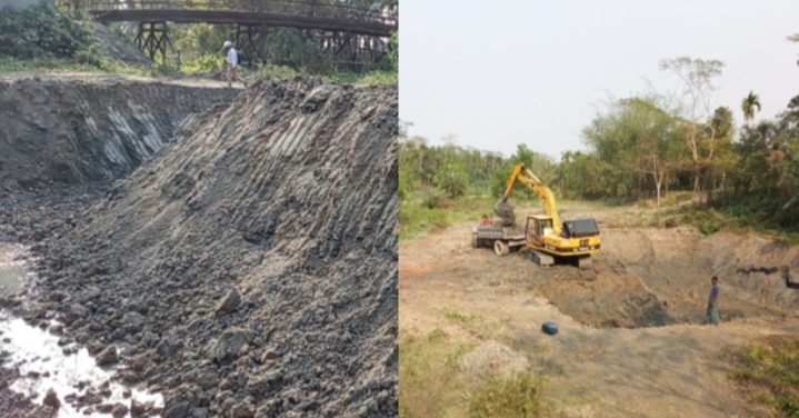 শনিবার সরেজমিনে ঘুরে দেখাগেছে, ভেকু মেশিন দিয়ে খালের মাটি কেটে ট্রলি গাড়ী বোঝাই করে পটুয়াখালী জেলার মরিচবুনিয়া ইউনিয়নের দক্ষিণ বাজারঘোনা প্রাইম ইটভাটায় নিয়ে যাচ্ছে। খালের দুই পাশে বাঁধ দেয়া আছে। গভীর করে খালের মাটি কেটে নেয়া হচ্ছে। এতে খালের পাড় ভেঙ্গে যাচ্ছে।