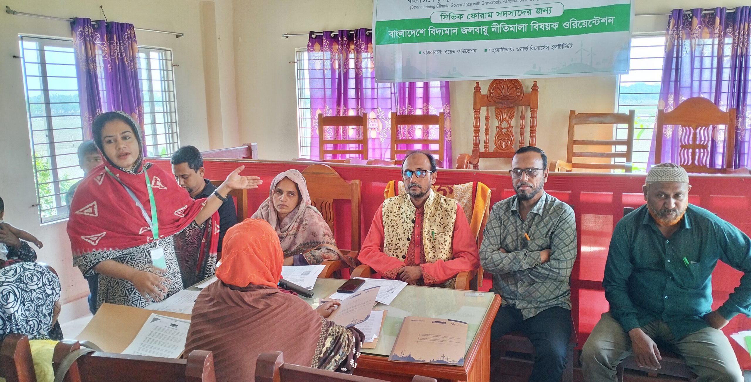 উক্ত ওরিয়েন্টেশনে জলবায়ু পরিবর্তনের প্রভাব মোকাবিলায় বিদ্যমান নীতিমালা নিয়ে আলোচনা করা হয়। প্রশিক্ষণ শেষে অংশগ্রহণকারীরা জলবায়ু নীতিমালা বাস্তবায়নের বিভিন্ন কৌশল নিয়ে মতামত প্রদান করেন।