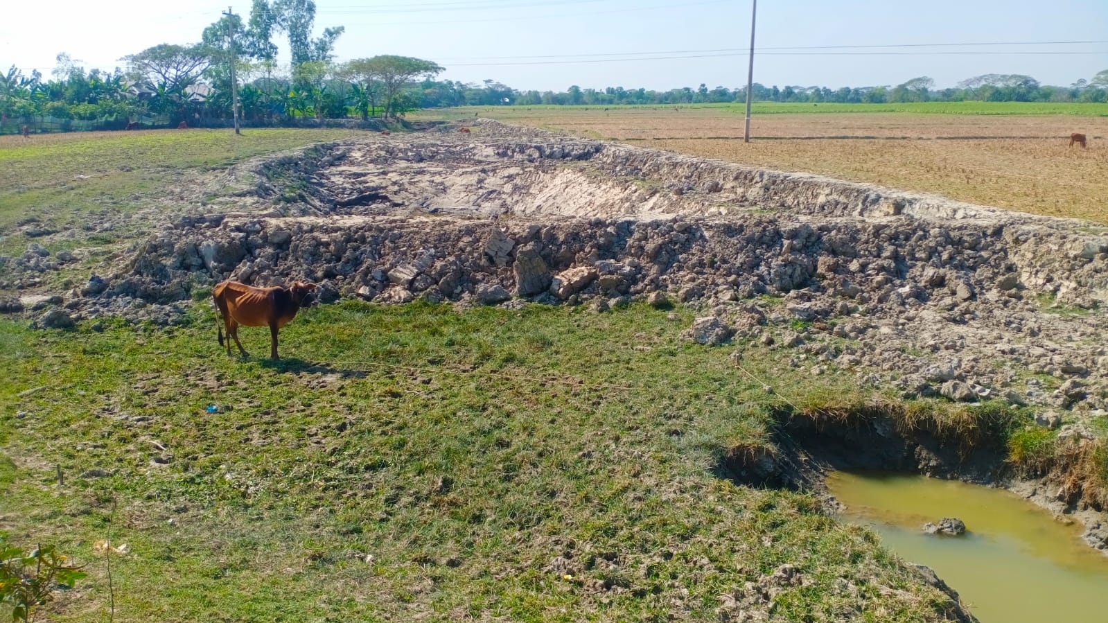 রিপোর্ট-মেজবাহউদ্দিন মাননুঃ এবার মরা খালে দখলদারের ছোবল পড়েছে। চলছে বসতবাড়িসহ পুকুর করার কাজ। উপজেলার গামৈরতলা গ্রামের দৃশ্য এটি। এখনও বর্ষাকালে কোমর সমান পানি থাকে খালটিতে। স্থানীয়ভাবে কেউ এ খালের নাম জানেন না। তবে পাখিমারার খালের সঙ্গে সংযোগ ছিল এক সময়। কলাপাড়া-কুয়াকাটা সড়ক নির্মাণে খালটির পানির প্রবাহ থমকে যায়। তবে এখনও রাস্তার দুইদিকে থাকা খালের অংশ দিয়ে বর্ষায় বিলের পানি ওঠানামা করছে খালটি দিয়ে। কিন্তু এখন খালটি নিশ্চিহ্নের শঙ্কায় পড়েছে। বলতে গেলে খালটির মৃত্যুর শেষ পর্যায়ে রয়েছে।