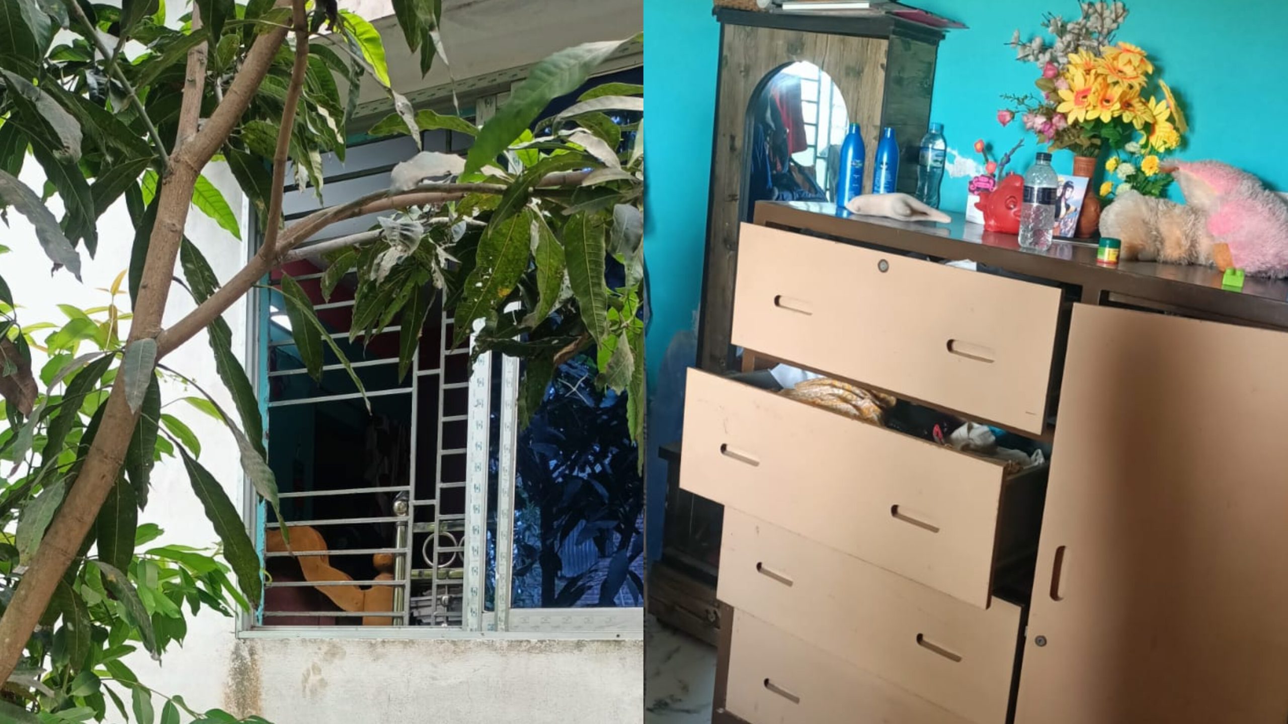 গৃহকর্তা জানান, রাত ৩:১০-এ তারা ঘুম থেকে উঠে বাথরুমে যান এবং তখন সবকিছু ঠিক ছিল। কিন্তু ভোর ৪:৪৫-এ ঘুম ভাঙলে তারা দেখেন, ঘরের দরজা খোলা, আলমারি ও শোকেসের তালা ভাঙা এবং ঘরের ভেতর কাপড়-চোপড় এলোমেলো।