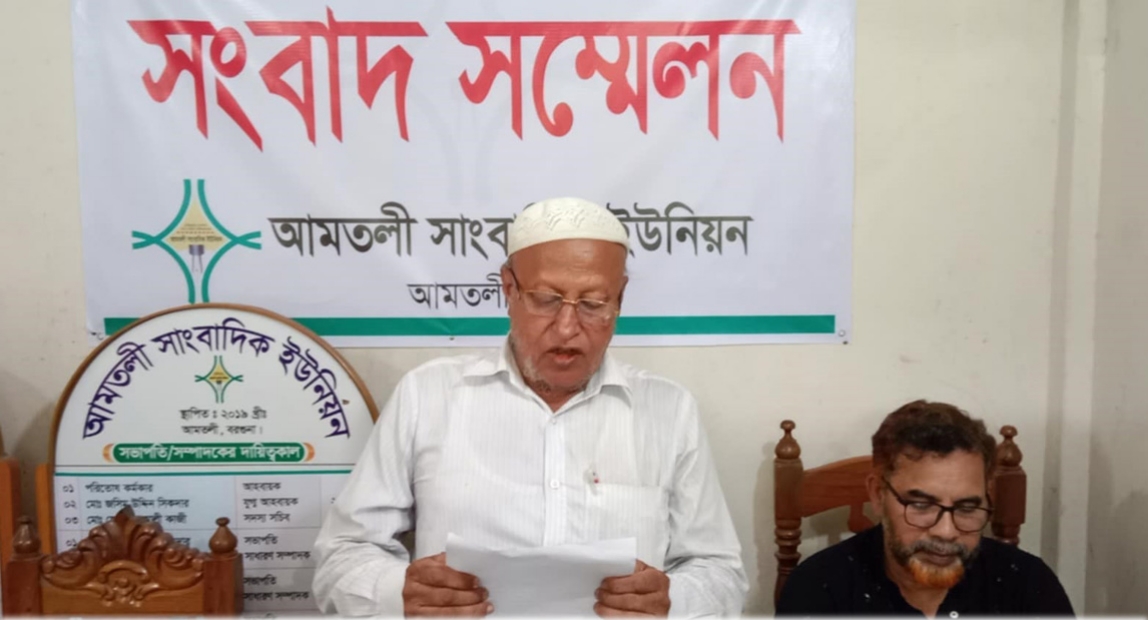 সংবাদ সম্মেলনে লিখিত বক্তব্যে মজিবুর রহমা সিকদার বলেন, আমতলী পৌর শহরের সবুজবাগ এলাকার ১৯৮৪ সালে কালু আকন, লতিফ ফকির ও আব্দুল আজিজের কাছ থেকে ১৯ শতাংশ জমি ক্রয় করি। ওই জমিতে ঘরবাড়ী নির্মাণ করে গত ৪১ বছর ধরে বসবাস করে আসছি। আমার ছেলে মেরিন ইঞ্জিনিয়ার সাইদুল ইসলাম রাসেল বর্তমানে আমেরিকা আছেন। গত ১০ দিন আগে আমি আমার জমিতে পাকা ভবন নির্মাণ কাজ শুরু করি। গত শনিবার হালিম মহুরী ও তার সহযোগীরা আমাকে ভবনের নির্মাণ কাজে বাঁধা দেয় এবং কাজ বন্ধ না করলে আমাকে মেরে ফেলার হুমকি দেয়। তাদের ভয়ে ঘর থেকে বাহিরে বের হতে পারছি না। তিনি আরো অভিযোগ করেন, হালিম ও তার লোকজন তাকে হুমকি দিচ্ছে, হয় তুই কাজ বন্ধ করবি, নইলে তোকে মেরে ফেলবো। তোর ছেলে আমেরিকা থাকলে কি হবে? তুই একা বাড়ীতে থাকো তোকে মেরে ফেললেও তোর ছেলে কিছুই করতে পারবে না। মজিবুর রহমান পুলিশ প্রশাসনের কাছে হালিমের এমন কর্মকান্ডের বিরুদ্ধে ব্যবস্থা নেয়ার দাবী জানিয়েছেন। সংবাদ সম্বেলনে তিনি আরো বলেন, হয়রানী করতে হালিম তার লোকজন সামাজিক যোগাযোগ মাধ্যমে আমার ও আমার ছেলের বিরুদ্ধে নানাবিধ অপপ্রচার চালাচ্ছে। যা মানহানির সামিল। যে সকল আইডি দিয়ে মানহানিকর অপপ্রচার চালাচ্ছেন তারা যদি ২৪ ঘন্টার মধ্যে ভুল স্বীকার না করে তাদের বিরুদ্ধে আইনী ব্যবস্থা নেয়া হবে।
