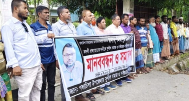 সঞ্জিব দাস,গলাচিপাঃ গলাচিপা উপজেলার নির্বাহী অফিসার মিজানুর রহমানের-বদলির আদেশ প্রত্যাহারের দাবিতে, সোমবার বেলা ১১ টায় পুরাতন ইউ এন ও অফিসের সম্মুখের রাস্তায় শত শত নাগরিক, সুশীল সমাজ ও সর্বস্তরের জন-সাধারন, মানববন্ধন ও সমাবেশ অনুষ্ঠিত হয়। সমাবেশে বক্তব্য রাখেন-গলাচিপা পৌর বিএনপির সাবেক সভাপতি মোঃ রফিকুল ইসলাম খান, বিএনপির সাবেক দপ্তর সম্পাদক আব্দুস সুবাহান মিয়া, ব্যবসায়ী ও উপজেলা বিএনপি নেতা মোহাম্মদ কামাল খান,এডভোকেট জিয়াউর রহমান জিয়া প্রমুখ।