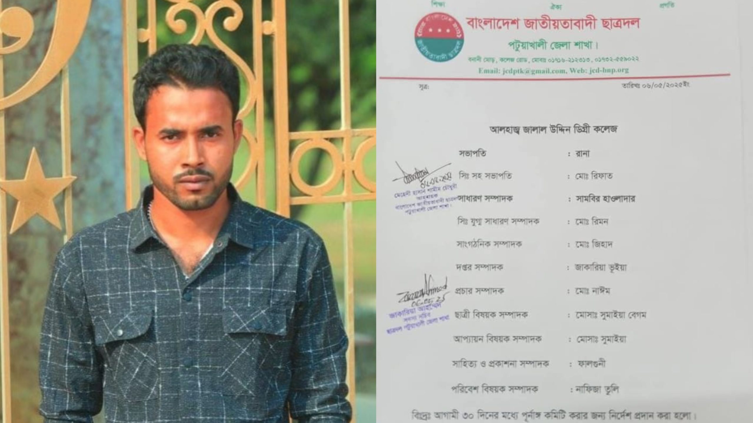 আপন নিউজঃ পটুয়াখালী জেলা ছাত্রদলের আওতাধীন কলাপাড়া উপজেলার আলহাজ্ব জালাল উদ্দিন ডিগ্রী কলেজ শাখার বাংলাদেশ জাতীয়তাবাদী ছাত্রদলের আংশিক কমিটি আনুষ্ঠানিকভাবে ঘোষণা করা হয়েছে। মঙ্গলবার (৬ মে) জেলা ছাত্রদলের আহ্বায়ক মেহেদী হাসান শামীম চৌধুরী ও সদস্য সচিব জাকারিয়া আহম্মেদ স্বাক্ষরিত এক বিজ্ঞপ্তির মাধ্যমে এ কমিটি প্রকাশ করা হয়।