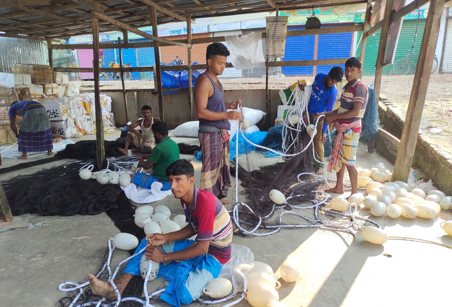 শনিবার সরেজমিনে ঘুরে দেখা যায়, নিষেধাজ্ঞার আগে ফিশিং বোট নিয়ে উপজেলার ফকিরহাট উপ-মৎস্য অবতরণ কেন্দ্রের ঘাটে এসেছেন জেলেরা। ঘাটে নোঙ্গর করে রাখা হয়েছে শত শত নৌকা-ট্রলার। ঘাটে নেই হাঁকডাক-কোলাহল। জেলেদের মধ্যে কেউ জাল বুনছেন আবার কেউ ঘাটে অলস সময় পার করছেন। কেউ আবার ট্রলার মেরামতে ব্যস্ত সময় পার করছেন।