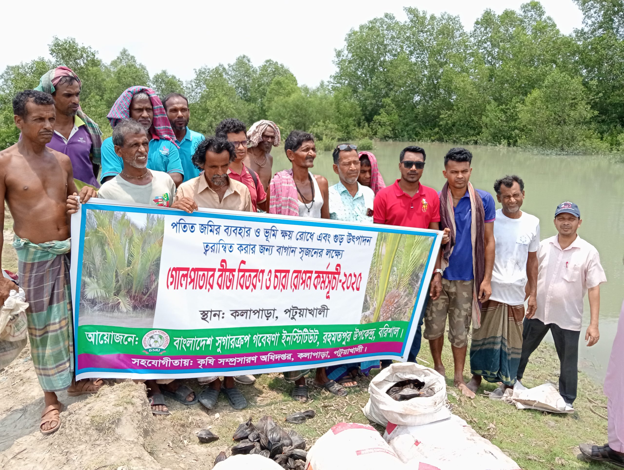 মো শরিফুল হক শাহীনঃ বাংলাদেশ সুগারক্রপ গবেষণা ইনস্টিটিউট, রহমতপুর উপকেন্দ্র বরিশাল আয়োজনে কলাপাড়া কষি সম্প্রসারণ অধিদপ্তর সহযোগীতায় পতিত জমির ব্যবহার ও ভূমি ক্ষয় রোধ করে গুড় উৎপাদন ত্বরান্বিত করার জন্য বাগান সৃজনের লক্ষ্যে গোলপাতার বীজ বিতরণ ও চারা রোপন কর্মসূচী-২০২৫ কলাপাড়ার নবীপুর গ্রামের ৩০ জন গোলচাষীর মাঝে পাঁচ হাজার বীজ ১৬ মে শুক্রবার দুপুরে বিতরণ করা হয়।