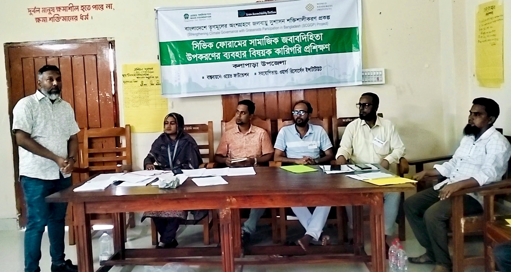 "বাংলাদেশে তৃণমূল জনগোষ্ঠীর অংশগ্রহণের মাধ্যমে জলবায়ু সুশাসন শক্তিশালীকরণ (SCGGP)" প্রকল্পের আওতায় ওয়েভ ফাউন্ডেশন এবং দাতা সংস্থা ওয়ার্ল্ড রিসোর্সেস ইন্সটিটিউট (WRI)-এর আর্থিক সহায়তায় এই প্রশিক্ষণের আয়োজন করা হয়। প্রশিক্ষণটি পরিচালনা করেন প্রকল্পের প্রজেক্ট কো-অর্ডিনেটর মোঃ মাসুক মুক্তাদির ও প্রজেক্ট অফিসার মোঃ আশিকুর রহমান। সার্বিক সহযোগিতায় ছিলেন কমিউনিটি মবিলাইজেশন অফিসার সোনিয়া আক্তার।