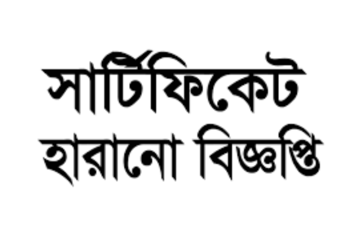 সার্টিফিকেট হারানো বিজ্ঞপ্তি: