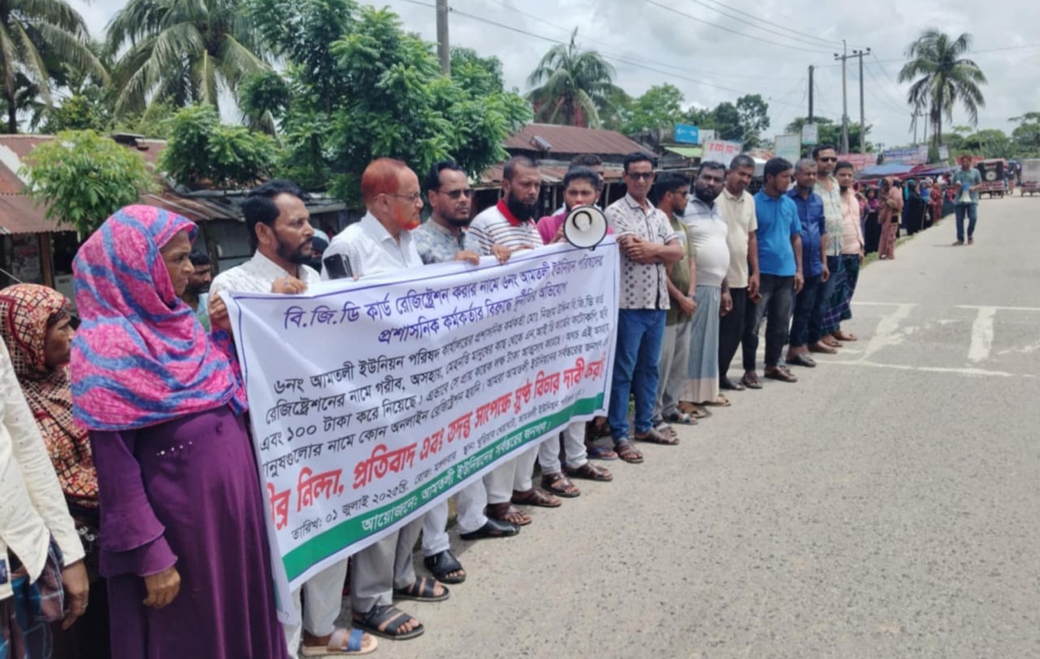 জানাগেছে, আমতলী উপজেলার সদর ইউনিয়ন পরিষদ প্রশাসনিক কর্মকর্তা মোহাম্মদ নিজাম উদ্দিন পরিষদে যোগদানের পর থেকেই ইউনিয়নের হতদরিদ্রদের ভিজিটি কার্ড, বয়স্ক ভাতা, বিধবা ভাতা, জেলে চাল ও হত দরিদ্রদের সেবা দেয়ার নামে টাকা আদায় করে আসছেন। তার বিরুদ্ধে বিভিন্ন দপ্তরে অভিযোগ দিলেও কোন প্রতিকার পায়নি ভুক্তভোগীরা। গত জুন মাসে অনলাইনে ভিজিডি রেজিষ্ট্রেশন কার্যক্রম শুরু হয়। ওই কার্যক্রমে তিনি হত দরিদ্র মানুষের কাছ থেকে টাকা আদায় করেছেন। এছাড়া জন্ম নিবন্ধন, জেলে চাল বিতরন ও হত দরিদ্রদের মাঝে চাল বিতরনে তিনি টাকা আদায় করেছেন এমন অভিযোগ ভুক্তভোগীদের। তার এমন কর্মকান্ডের বিরুদ্ধে ও তার শাস্তি দাবীতে মঙ্গলবার বেলা ১১ টার দিকে আমতলী সদর ইউনিয়ন পরিষদ সামনে খুড়িয়ার খেয়াঘাট এলাকায় ভুক্তভোগীরা মানববন্ধন করেছে।