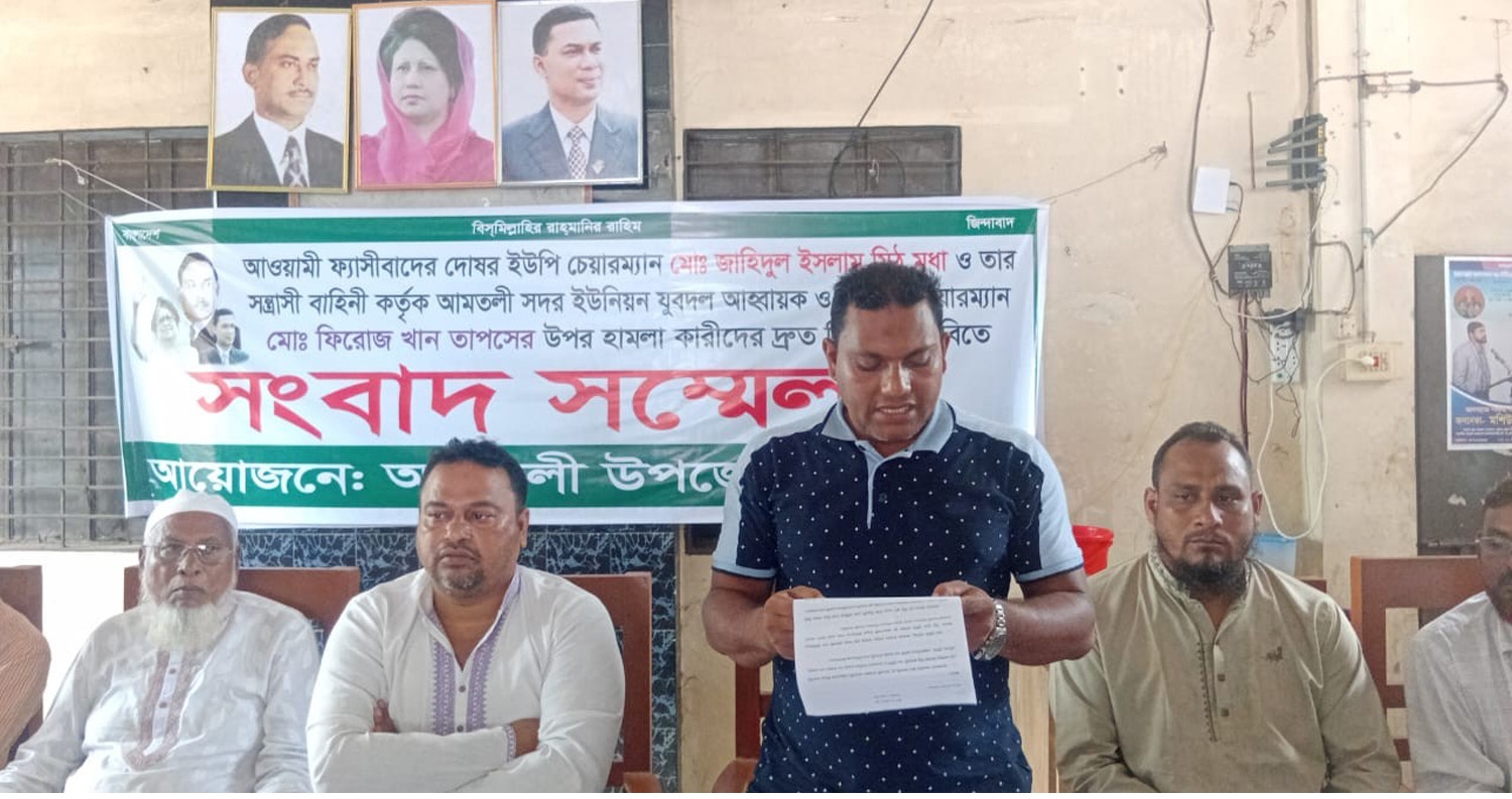 সংবাদ সম্মেলনে হেলাল প্যাদা বলেন, নিষিদ্ধ ঘোষিত আওয়ামীলীগ দোষর আমতলী উপজেলা স্বেচ্ছাসেবকলীগ সভাপতি সদর ইউনিয়ন পরিষদ চেয়ারম্যান মোঃ জাহিদুল ইসলাম মিঠু মৃধা দায়িত্ব পাওয়ার পর থেকেই জনগনের সেবা না দিয়ে হয়রানী করে আসছেন। ক্ষমতার অপব্যহতার করে ও স্বেচ্ছাচারিতার মাধ্যমে ইউনিয়ন পরিষদকে দুর্নীতির আখরায় পরিনত করেন। চাল বিতরনে অনিয়ম, আত্মসাৎ, ভিজিডি, বয়স্ক ভাতা, বিধবা ভাতা, জন্ম নিবন্ধন সনদ ও ওয়ারিশ সার্টিফিকেট দেয়ার নামে ঘুষ গ্রহন করেন। এছাড়াও তিনি তার বাবা কাঞ্চন আলী মৃধার নামে ভুয়া প্রকল্প দেখিয়ে কাজ না করে টাকা আত্মসাৎ করেছেন। গত রবিবার ইউনিয়ন যুবদল সভাপতি ইউপি সদস্য ফিরোজ খাঁন তাপস ইউনিয়ন পরিষদ কার্যালয়ে চেয়ারম্যান মিঠু মৃধার এমন কর্মকান্ডের বিরুদ্ধে প্রতিবাদ করেন। এতে ক্ষুব্দ হয়ে তার (চেয়ারম্যান) সন্ত্রাসী বাহিনী তাপসকে মারধর করে পুলিশে সোপর্দ করেছেন। সংবাদ সম্মেলনে তিনি আরো অভিযোগ করেন,চেয়ারম্যান মিঠুর বড় ভাই আওয়ামীলীগ সহ-সভাপতি নুরুল ইসলাম মৃধার ছেলে সাবেক আমতলী উপজেলা ছাত্রলীগ সভাপতি বর্তমানে ঝালকাঠি উপজেলা খাদ্য কর্মকর্তা আব্দুল্লাহ আল মামুন বিল্পব দুর্নীতি মাধ্যমে শত কোট টাকা আয় করেছেন। ওই টাকা দিয়ে তিনি তালতলী ও আমতলীতে অন্তত কয়েক শত একর জমি ক্রয় করেছেন। পটুয়াখালী শহরের অভিজাত ফ্লাট বাড়ীর মালিক হয়েছেন। তার অবৈধ টাকা দিয়ে সন্ত্রাসী বাহিনী লালন-পালন করেছেন। তার ভাড়াটিয়া সন্ত্রাসীরা যুবদল সভাপতি ইউপি সদস্য তাপসের ওপর হামলা করেছে। পরে তারা তাকে পুলিশে ধরিয়ে দিয়েছেন। সংবাদ সম্মেলনে ইউপি সদস্য তাপস খাঁনের স্ত্রী জাকিয়া বেগম বলেন, আমার স্বামী বিএনপির রাজনীতির সঙ্গে জড়িত। গত ১৬ বছর ফ্যাসিষ্ট শেখ হাসিনার দোষরা মিথ্যা মামলা দিয়ে হয়রানী করছেন। এখন আমতলী উপজেলা বিএনপির বহিস্কৃত সভাপতি জালাল উদ্দিন ফকির তার ক্রোধ মেটাতে চেয়ারম্যান মিঠু মৃধাকে ইন্দন যোগিয়ে আমার স্বামীকে মারধর ও হয়রানী করিয়েছেন। তিনিই আবার আমার স্বামীকে পুলিশে ধরিয়ে দিয়েছেন এবং মামলায় আসামী করেছেন। আমি বিএনপির বহিস্কৃত নেতা জালাল উদ্দিন ফকিরসহ ঘটনার সঙ্গে জড়িত তার সাঙ্গ-পাঙ্গদের শাস্তি দাবী করছি। সংবাদ সম্মেলনে আরো উপস্থিত ছিলেন উপজেলা বিএনপির সদস্য সচিব তৃহিন মৃধা, যুগ্ম আহবায়ক মকবুল খাঁন, কামরুজ্জামান হিরু মৃধা, যুবদল সদস্য সাবেক কাউন্সিলর সামসুল হক চৌকিদার, পৌর বিএনপির যুগ্ম আহবায়ক আবুল বাশার তালুকদার, মাহবুব আলম রিপন, উপজেলা কৃষকদল সভাপতি জাহাঙ্গির আলম, উপজেলা শ্রমিকদল সাধারণ সম্পাদক ইউপি সদস্য কামাল বিশ্বাস, পৌর শ্রমিকদল সভাপতি মিল্টন বিশ্বাস ও আমিনুল আকন প্রমুখ।