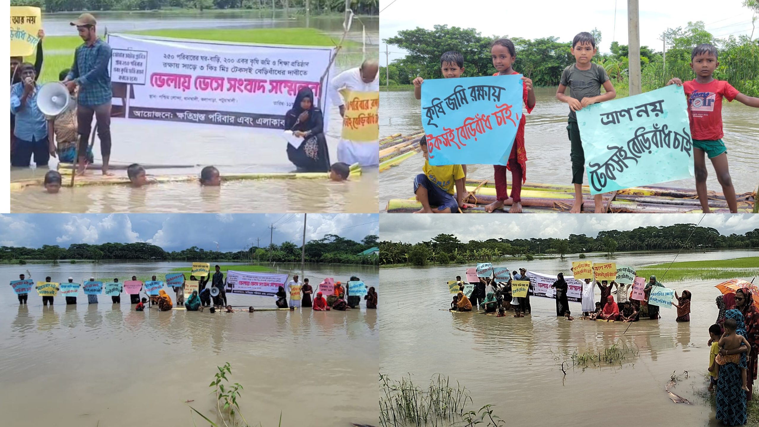 বক্তারা জানান, চার দশক ধরে বসবাস করলেও এই এলাকার মানুষ জোয়ার-ভাটায় ডুবি-ভাসি জীবনযাপন করছে। ঘূর্ণিঝড়, অস্বাভাবিক জোয়ার, অমাবস্যা-পূর্ণিমার প্লাবনে ঘরবাড়ি, রাস্তা-ঘাট, স্কুল ও কৃষিজমি তলিয়ে যায়। শিশুদের স্কুলে যাওয়া, রান্নাবান্না, অসুস্থ ও গর্ভবতী নারীদের চিকিৎসা গ্রহণ প্রায় অসম্ভব হয়ে পড়ে।