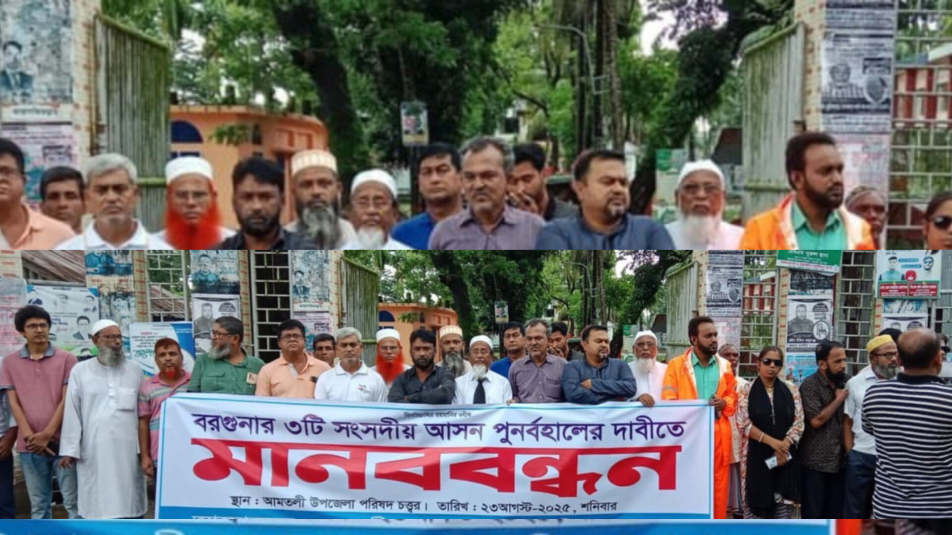 গত ৩০ জুলাই নির্বাচন কমিশন বরগুনা জেলার আসন পুর্নবহাল না করে খসরা গেজেট প্রকাশ করেছে। এতে বরগুনা জেলার সংসদীয় আসনে কোন পরিবর্তন আনেননি। এতে বরগুনা জেলার সাড়ে ১২ লাখ মানুষ ক্ষুব্দ হন। পরে গত ১০ আগষ্ট নির্বাচন কমিশনে বরগুনা জেলায় তিনটি সংসদীয় আসন পুর্নবহালের দাবীতে ১৩০ জন ব্যাক্তি আবেদন করেছেন। আগামী ২৫ আগষ্ট বরগুনা জেলার এ সংসদীয় আসনের আপিল শুনানির দিন ধায্য করেছে নির্বাচন কমিশন। এ তিনটি সংসদীয় আসন ফিরে পেতে শনিবার আমতলী উপজেলা পরিষদ প্রাঙ্গণে মানববন্ধন করা হয়েছে। এতে আমতলী উপজেলার বিভিন্ন শ্রেনী পেশার অন্তত সহ¯্রাধিক মানুষ অংশ নেয়। তাদের দাবী বরগুনা জেলার তিনটি সংসদীয় আসন ফেরত দিতে হবে। নইলে উপকুলীয় জেলা বরগুনা উন্নয়ন বঞ্চিত হবে। মানববন্ধনে বক্তব্য রাখেন সাবেক সাংসদ অধ্যাপক এডভোকেট মজিদ মল্লিক, উপজেলা বিএনপির সিনিয়র যুগ্ম আহবায়ক মোঃ জহিরুল ইসলাম ভিপি মানুন, সদস্য সচিব তুহিন মৃধা, বে-সরকারী সংস্থা এনএসএস নির্বাহী পরিচালক অ্যাডভোকেট শাহাবুদ্দিন পান্না, প্রেসক্রাব সভাপতি রেজাউল করিম বাদল, মকবুল খাঁন, পৌর বিএনপির আহবায়ক কবির ফকির, বিআরডিবির চেয়ারম্যান মাইনুদ্দিন মামুন ও সৈয়দ আসাদুজ্জামান কাওসার প্রমুখ।
