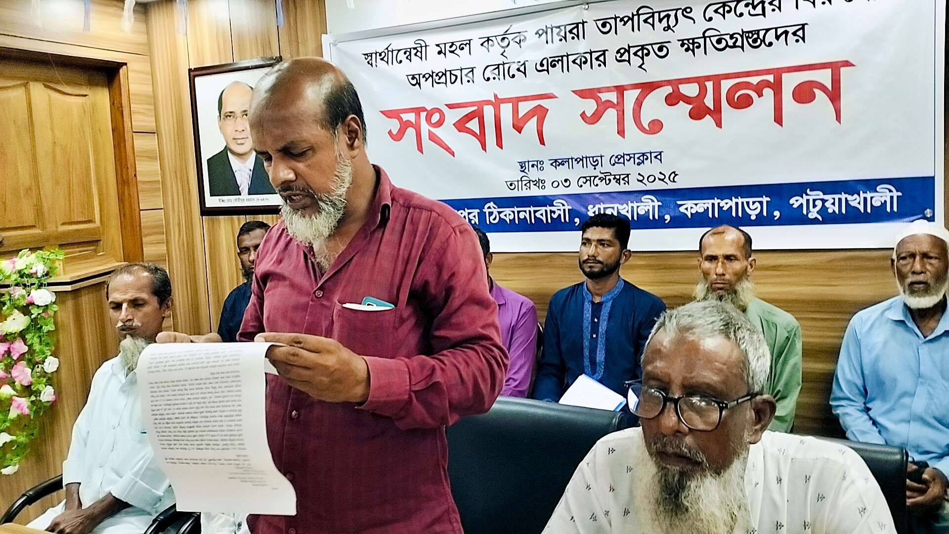 উল্লেখ্য গণ অধিকার পরিষদের সহযোগী সংগঠন ছাত্র অধিকার পরিষদের কেন্দ্রীয় নেতা ধানখালীর বাসীন্দা রবিউল আউয়াল অন্তর আট দফা দাবি আদায়ের লক্ষ্যে গত ২৮ আগস্ট সংবাদ সম্মেলন করে সাত দিনের সময় বেধে দিয়ে সড়ক ব্লকেড কর্মসূচির আল্টিমেটাম দেন। এর প্রেক্ষিতে পায়রা তাপ বিদ্যুৎ কেন্দ্রের সিকিউরিটি সুপারভাইজর রাশেদুল ইসলাম সোমবার রাতে কলাপাড়া থানায় একটি সাধারণ ডায়েরি করেন। যার কারণে বিদ্যুৎ কেন্দ্র নির্মাণে ক্ষতিগ্রস্ত পরিবারের সদস্যরা আজ তাদের অবস্থান পরিষ্কার করতে এই সংবাদ সম্মেলন করেন।