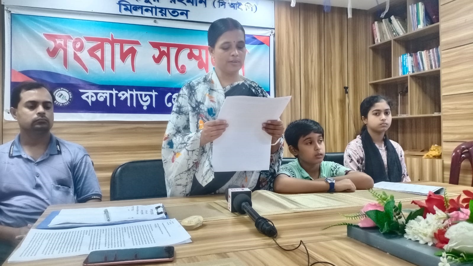আপন নিউজ ডেস্কঃ কলাপাড়ায় পাখিমারা বাজারের স্বর্ণব্যবসায়ী নিখিল কর্মকারের আমিরাবাদ গ্রামের বাড়িতে ডাকাতির ঘটনায় স্থানীয় বিএনপির নেতা মো. ফজলুর রহমান (ফজলুল হক) ভেন্ডারকে মদদদাতা হিসেবে চিহ্নিত করে এ ঘটনাকে ভিন্নখাতে প্রবাহিত করার অভিযোগ এনে ক্ষতিগ্রস্ত পরিবারের পক্ষ থেকে সংবাদ সম্মেলন করা হয়েছে। রবিবার দুপুরে পটুয়াখালীর কলাপাড়া প্রেসক্লাবে এই সংবাদ সম্মেলনে লিখিত বক্তব্য পাঠ করেন নিখিল কর্মকারের স্ত্রী শিলা রাণী। এ সময় তার স্বামী নিখিল কর্মকার, দশম শ্রেণি পড়ুয়া মেয়ে নিঝুম কর্মকার ও ষষ্ঠ শ্রেণি পড়ুয়া ছেলে নীরব কর্মকার উপস্থিত ছিলেন।