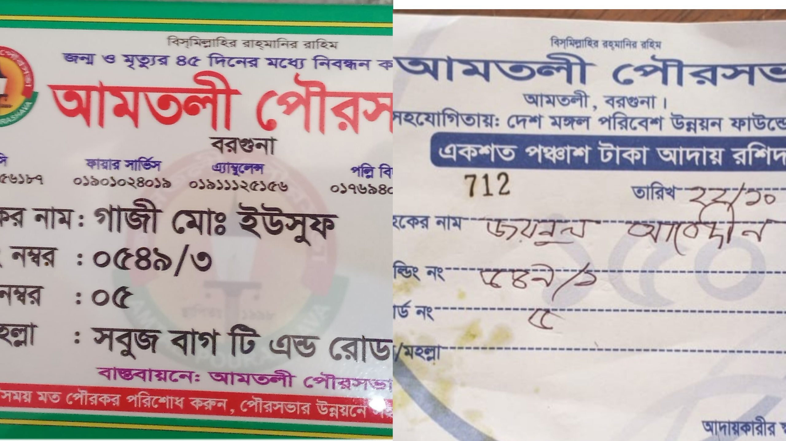 আমতলী পৌরসভার মাজার রোডের মিজানুর রহমান তালুকদার ও মন্নান বয়াতি বলেন, ৫০ টাকার খানা প্লেট তৈরিতে স্বাক্ষর বিহীন ১৫০ টাকার রশিদ দিয়ে টাকা আদায় করছেন। দ্রুত তদন্ত সাপেক্ষ ব্যবস্থা নেয়ার দাবী জানান তারা।