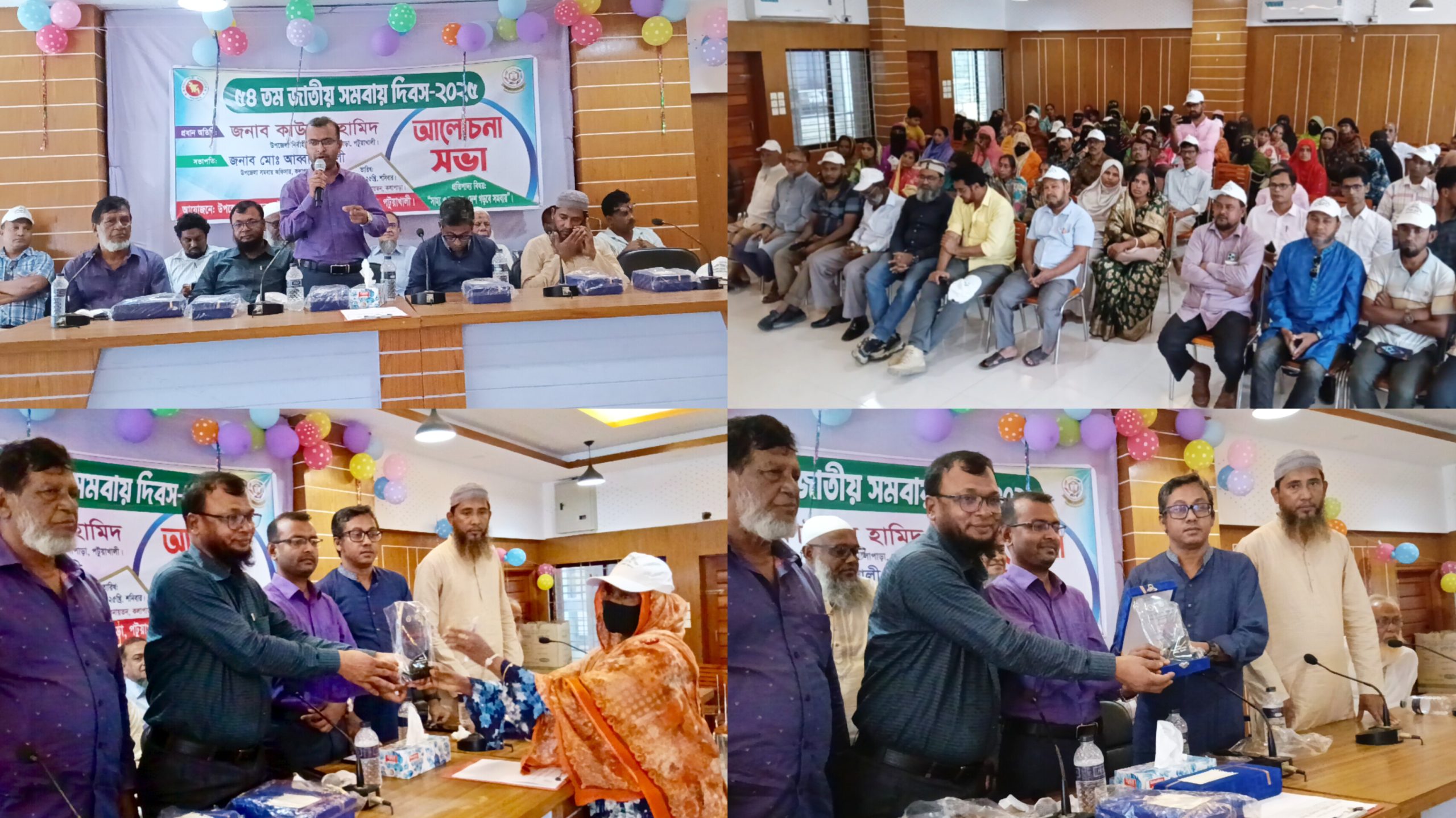 সমবায় দিবসে শ্রেষ্ঠ সমবায়ী হিসেবে বিআরডিবির চেয়ারম্যান মো. ফোরকান তালুকদার, খেপুপাড়া কো-অপারেটিভ সাপ্লাই অ্যান্ড সেল সোসাইটির ভাইস চেয়ারম্যান নাসিরউদ্দিন আহমেদ রতন, মহিপুর এসআরওএসবি সমিতির সভাপতি মো. সাইফুল ইসলাম, কলাপাড়া উপজেলা শিক্ষক-কর্মচারী কো-অপারেটিভ ক্রেডিট ইউনিয়ন লিমিটেড, সলিমপুর রিলাই হাস-মুরগী উৎপাদনকারী সমবায় সমিতি লিমিটেড, মধ্য টিয়াখালী রিলাই মুগডাল উৎপাদনকারী সমবায় সমিতি লিমিটেডকে সম্মাননা ক্রেস্ট প্রদান করা হয়।