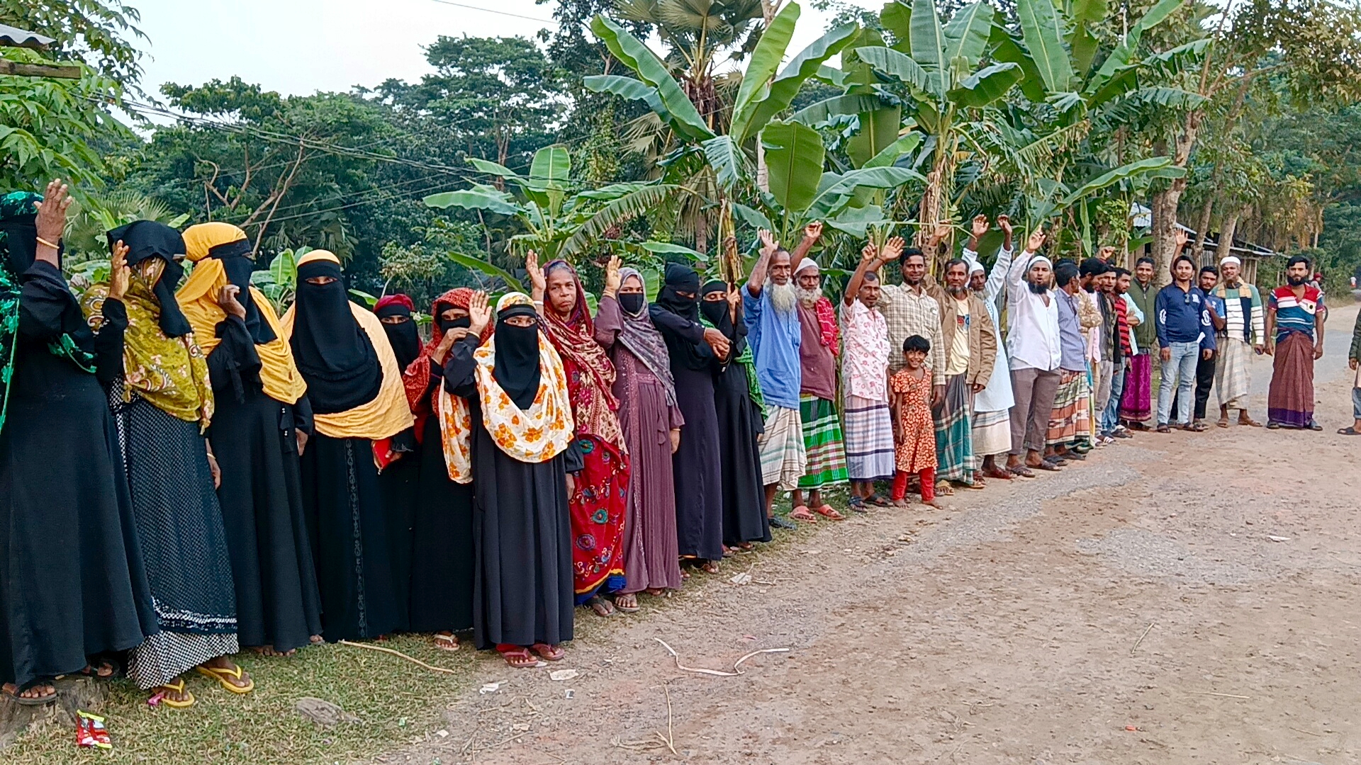 মানববন্ধনে ভুক্তভোগী রশিদ হাওলাদার, মালেক সিকদার, জুলহাস শরিফ, নুরুল ইসলাম, শামিম খাঁ, জেসমিন বেগম, বানু, নাছিমা বেগম, শাহিনুর বেগম, জয়নোব বেগম ও শাহিন হাওলাদার বক্তব্য দেন।