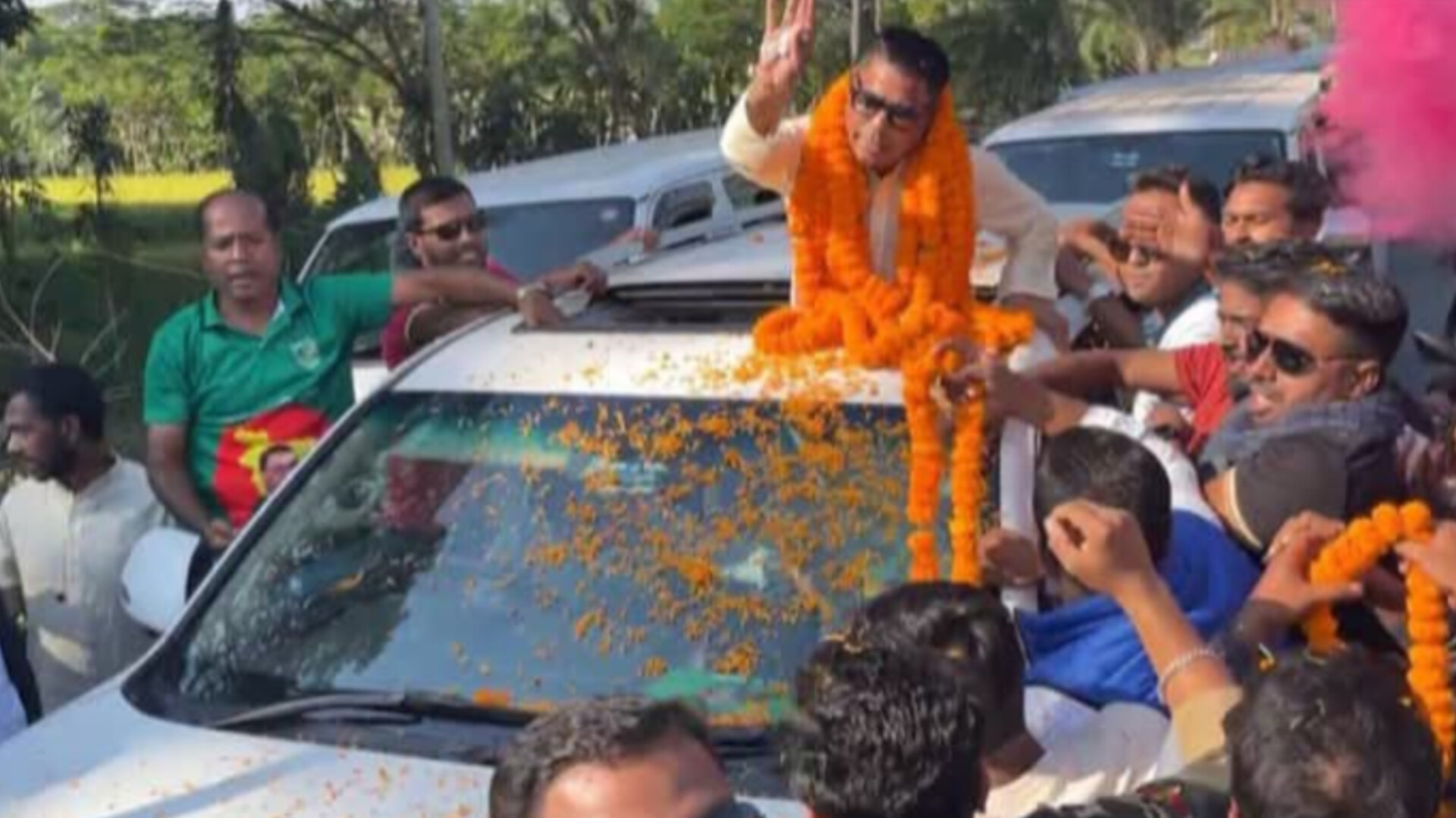 শনিবার সকাল থেকেই শহরজুড়ে ছিল উৎসবের আমেজ। শহরের প্রবেশমুখ থেকে শত শত নেতাকর্মী ফুল দিয়ে তাকে বরণ করে নেন। পরে হাজার হাজার মোটরসাইকেলের মহাশোডাউনে পুরো এলাকা উত্তাল হয়ে ওঠে উচ্ছ্বাসে।