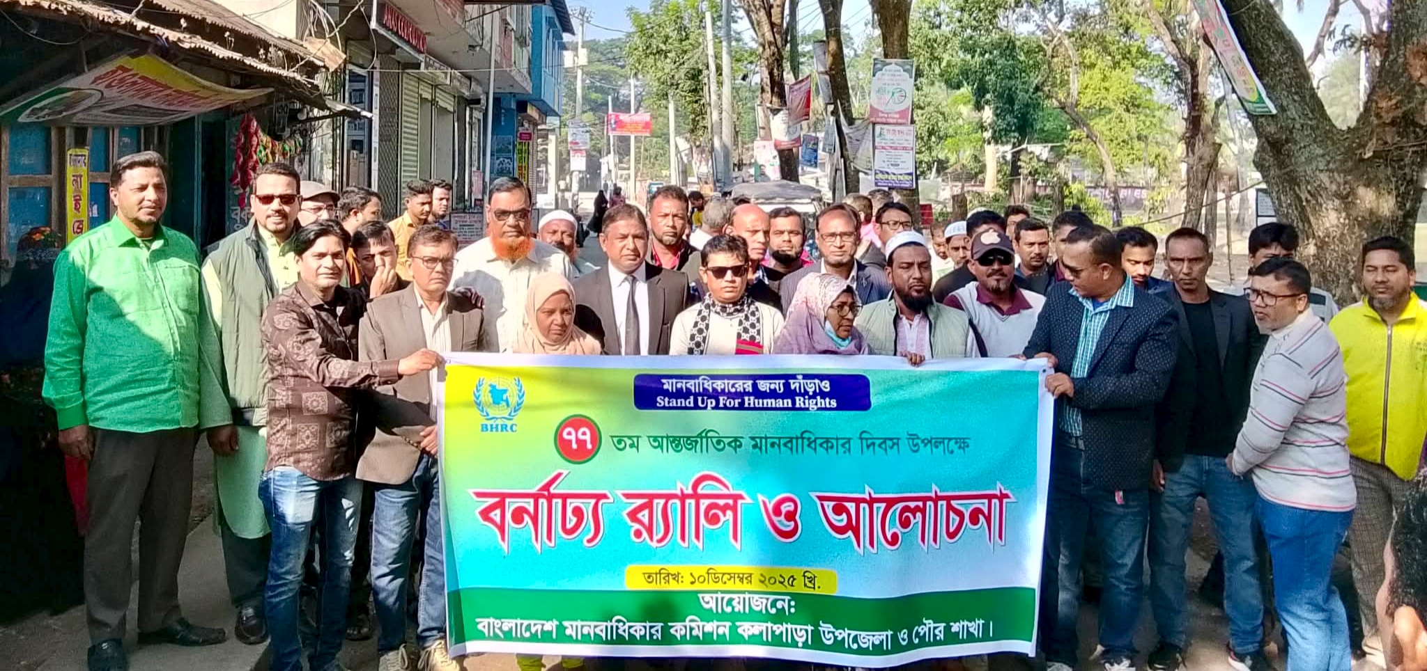 “মানবাধিকারের জন্য দাঁড়াও” শ্লোগানে ব্যানার হাতে র্যালিটি কলাপাড়া প্রেসক্লাব চত্বর থেকে বের হয়ে পৌর শহরের গুরুত্বপূর্ণ সড়ক প্রদক্ষিণ শেষে একই স্থানে আলোচনা সভায় মিলিত হয়।