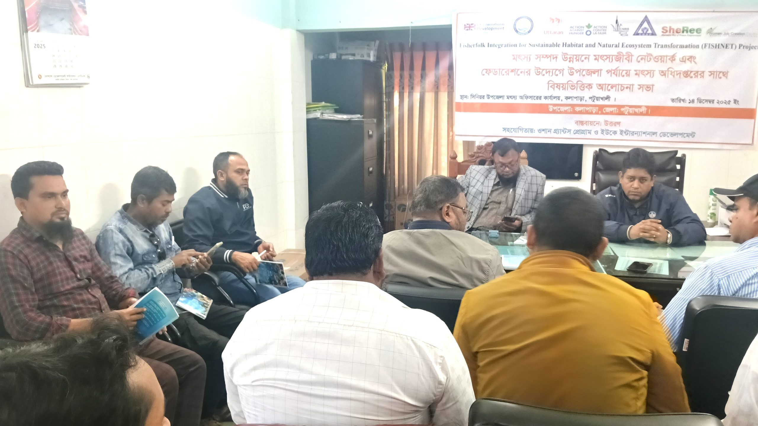 আপন নিউজ ডেস্কঃ কলাপাড়া উপজেলায় মৎস্য সম্পদ উন্নয়নের লক্ষ্যে মৎস্যজীবী নেটওয়ার্ক ও ফেডারেশনের উদ্যোগে উপজেলা মৎস্য অধিদপ্তরের সঙ্গে একটি বিষয়ভিত্তিক আলোচনা সভা অনুষ্ঠিত হয়েছে। বেসরকারি উন্নয়ন সংস্থা উত্তরণ–এর সহযোগিতায় ফিশনেট প্রকল্পের আওতায় এ সভার আয়োজন করা হয়।