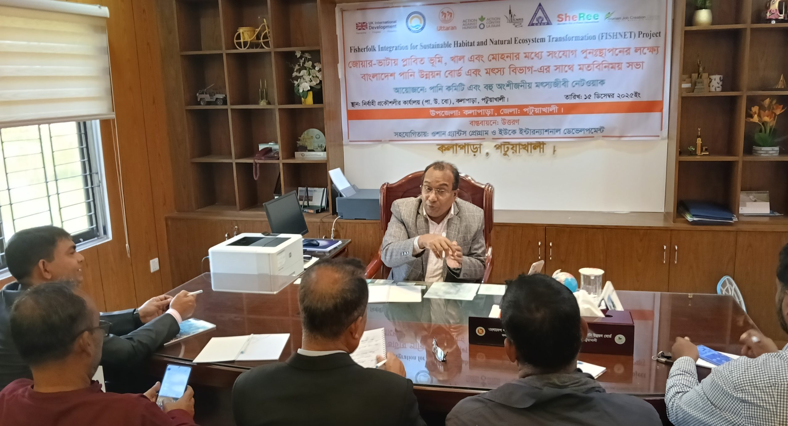 ফিশনেট প্রকল্পের আওতায় উত্তরণ-এর সহযোগিতায় ওসান গ্রান্টস প্রোগ্রাম এবং ইউকে ইন্টারন্যাশনাল ডেভেলপমেন্টের আর্থিক সহায়তায় সোমবার (১৫ ডিসেম্বর) সকাল ১০টায় পানি উন্নয়ন বোর্ড এর কলাপাড়া উপজেলা নির্বাহী প্রকৌশলী কার্যালয়ে এ সভা অনুষ্ঠিত হয়।