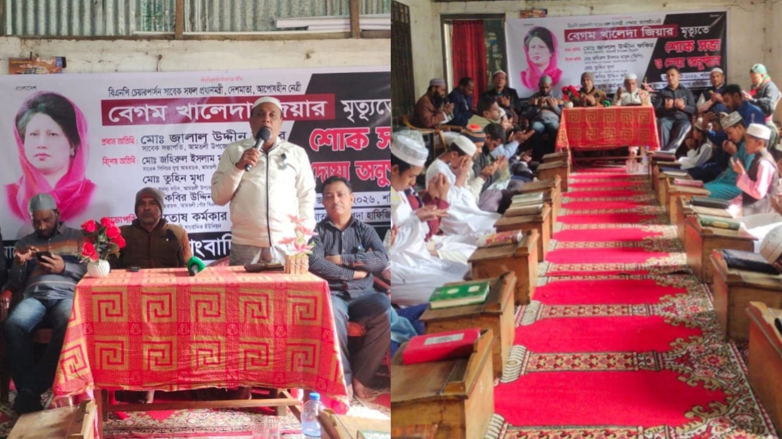 আমতলী প্রতিনিধিঃ সাবেক প্রধানমন্ত্রী বিএনপি চেয়ারপার্সন মাদার অব ডেমোক্রেসী বেগম খালেদা জিয়ার মৃত্যুতে আমতলী সাংবাদিক ইউনিয়নের উদ্যোগে ব্যাতিক্রমী শোকসভা, দোয়া ও স্মরণসভা অনুষ্ঠিত হয়েছে। শনিবার দুপুরে ওয়াবদা হাফিজিয়া মাদ্রাসায় শতাধিক কোরআনের পাখিরা এ শোকসভায় কোরআন খতম করেন।