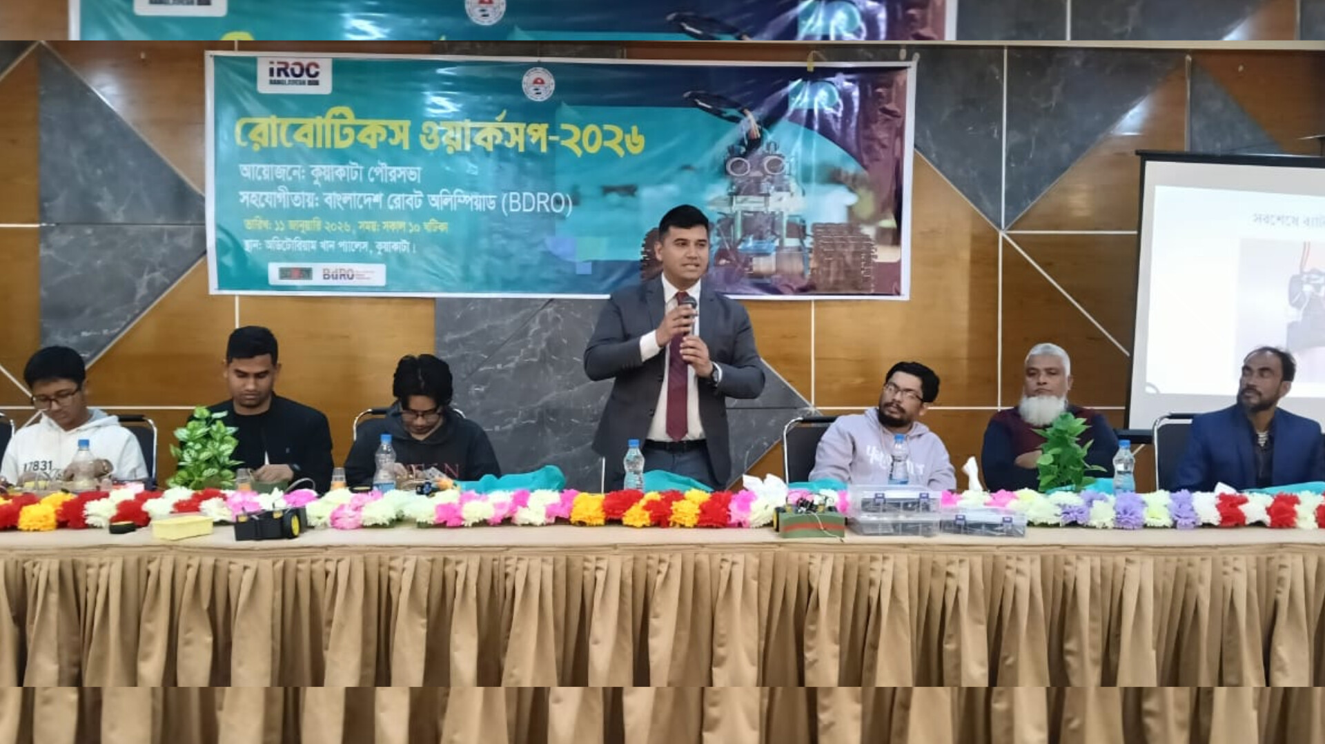 কুয়াকাটা পৌরসভার উদ্যোগে এবং বাংলাদেশ রোবট অলিম্পিয়াড (BDRO)-এর সহযোগিতায় আয়োজিত “IROC Bangladesh Robotics Workshop–2026” শীর্ষক এ কর্মশালায় সভাপতিত্ব করেন কুয়াকাটা পৌরসভার প্রকৌশলী ও ভারপ্রাপ্ত সচিব মো. নিয়াজ মাহমুদ। প্রধান অতিথি হিসেবে উপস্থিত ছিলেন উপজেলা সহকারী কমিশনার (ভূমি) ও কুয়াকাটা পৌর প্রশাসক ইয়াসিন সাদেক।