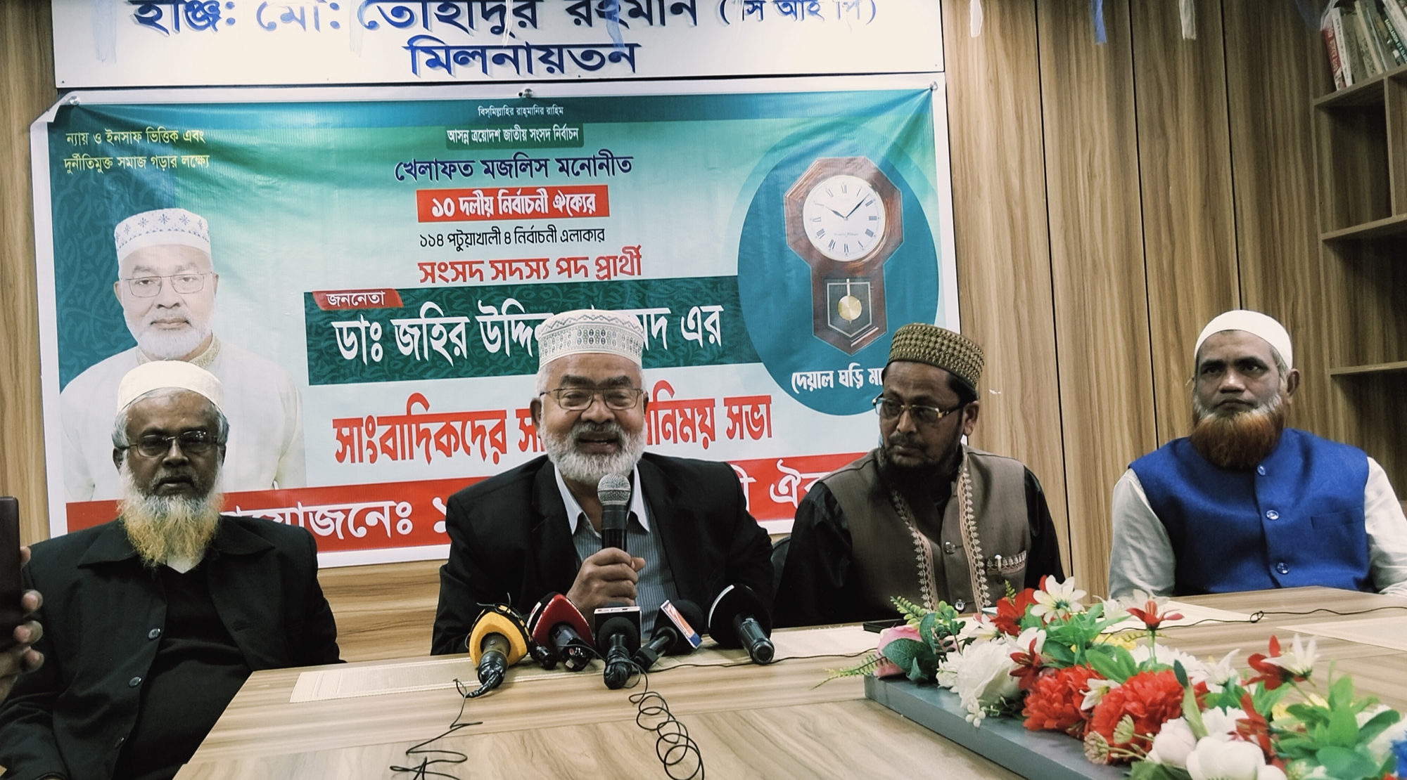 বিশ্বাস শিহাব পারভেজ মিঠুঃ ন্যায় ও ইনসাফ ভিত্তিক এবং দূর্ণীতিমুক্ত সমাজ গড়ার লক্ষ্যে ১১৪ পটুয়াখালী-৪ (কলাপাড়া-রাঙ্গাবালী) আসনে ১০ দলীয় জোট নির্বাচনী ঐক্যের খেলাফত মজলিস মনোনীত ঘড়ি প্রতিকের প্রার্থী ডাঃ জহির উদ্দিন আহমেদ’র সাথে সাংবাদিকদের মতবিনিময় সভা অনুষ্ঠিত হয়েছে। বৃহস্পতিবার দুপুর দেড়টায় কলাপাড়া প্রেসক্লাবের ইঞ্জি: তৌহীদুর রহমান মিলনায়তনে ১০ দলীয় নির্বাচনী ঐক্য এ মতবিনিময় সভার আয়োজন করে। সভায় ১০ দলীয় নির্বাচনী জোটের প্রার্থী ডাঃ জহির উদ্দিন আহমেদ বলেন, তিনি বিজয়ী হলে এ আসনকে সন্ত্রাস, চাঁদাবাজ, মাদক ও দখলবাজমুক্ত করার পাশাপাশি গরীব দুঃখী মানুষের পাশে থাকতে চাই। এছাড়া পর্যটন কেন্দ্র কুয়াকাটাসহ ১০ দলীয় জোট ঘোষিত ন্যায় ও ইনসাফ ভিত্তিক দেশ গড়ে তোলা হবে বলে আশ্বাস দেন। তিনি বলেন, আমি যদি স্বচ্ছ না থাকি তাহলে আগামীতে অন্যদের মতো বুক ফুলিয়ে চলতে পারব না। তাই এলাকার উন্নয়নে মানুষের পাশে থেকে কাজ করতে চাই। এই মতবিনিময় সভার মাধ্যমে তিনি তার প্রচারনা শুরু করলেন বলেও জানান। মতবিনিময় সভার জামায়াতে ইসলামী কলাপাড়া পৌর শাখার সেক্রেটারি মো. মহিবুল্লাহ, খেলাফত মজলিস কলাপাড়া শাখার সভাপতি মো. সাইফুর রহমান, রাঙ্গাবালী জামায়াতে ইসলামির আমীর মোহাম্মদ কবির হুসাইনসহ ১০ দলীয় জোটের নেতা-কর্মীরা উপস্থিত ছিলেন। এছাড়া কলাপাড়ায় কর্মরত জাতীয়, স্থানীয় ও ইলেকট্রনিক্স মিডিয়ার গনমাধ্যম কর্মীরা উপস্থিত ছিলেন।