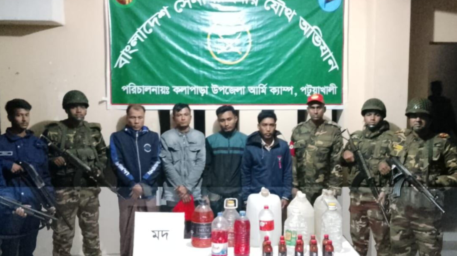 সেনা সূত্র জানায়, সোমবার (২৬ জানুয়ারি) রাত আনুমানিক ১টার দিকে কলাপাড়া আর্মি ক্যাম্পের অধীন দুটি পৃথক টহল দল উপজেলার বালিয়াতলী ইউনিয়নের ৩ নং ওয়ার্ডের কোম্পানিপাড়ায় একযোগে অভিযান পরিচালনা করে। অভিযানে প্রায় ৬০ লিটার প্রস্তুত দেশি মদ উদ্ধার করা হয়, যার আনুমানিক বাজারমূল্য প্রায় ৭৫ হাজার টাকা।