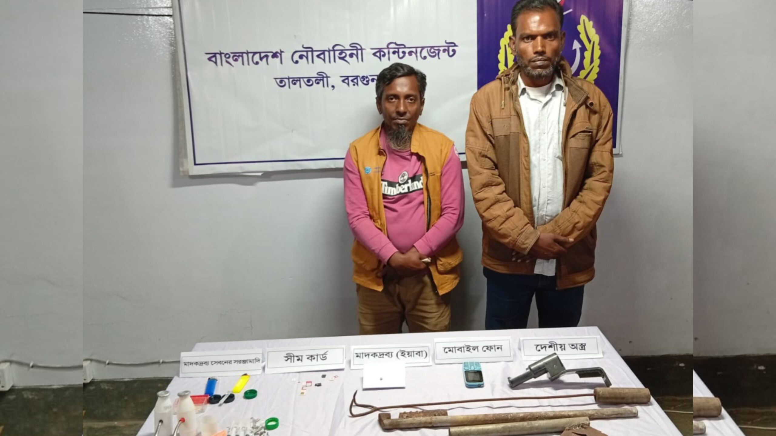 জানাগেছে, উপজেলার স্বেচ্ছাসেবক দলের আহবায়ক ঝাড়াখালি গ্রামের ইসহাক আকন সবুজ ও উপজেলা স্বাস্থ্য কমপ্লেক্সের স্বাস্থ্য সহকারী আবুল কালাম আজাদ দীর্ঘদিন ধরে মাদক সেবন ও বিক্রি করে আসছে। মঙ্গলবার রাতে তারা উপজেলা সাবেক ছাত্রলীগ সাধারণ সম্পাদক মিরাজ জোমাদ্দারের বাসার তৃতীয় তলায় মাদক সেবক করছিল। গোপন সংবাদের ভিত্তিতে নৌ-বাহিনীর কমান্ডার ফাহিম উদ্দীন সাকিবের নেতৃত্বে একটি টিম ওই স্থানে অভিযান চালায়। এ সময় তারা মাদক সেবনের সরঞ্জাম ও দেশীয় অস্ত্রসহ তাদের আটক করে। পরে তাদের তালতলী উপজেলা ভ্রাম্যমাণ নির্বাহী ম্যাজিস্ট্রেট আদালতে সোপর্দ করেছে। আদালতের বিচারক সেবক মন্ডল মাদক দ্রব্য নিয়ন্ত্রণ আইনে তাদের ২০ দিনের কারাদন্ড দিয়েছেন। বুধবার বিকেলে পুলিশ তাদের বরগুনা জেল হাজতে প্রেরন করেছেন।