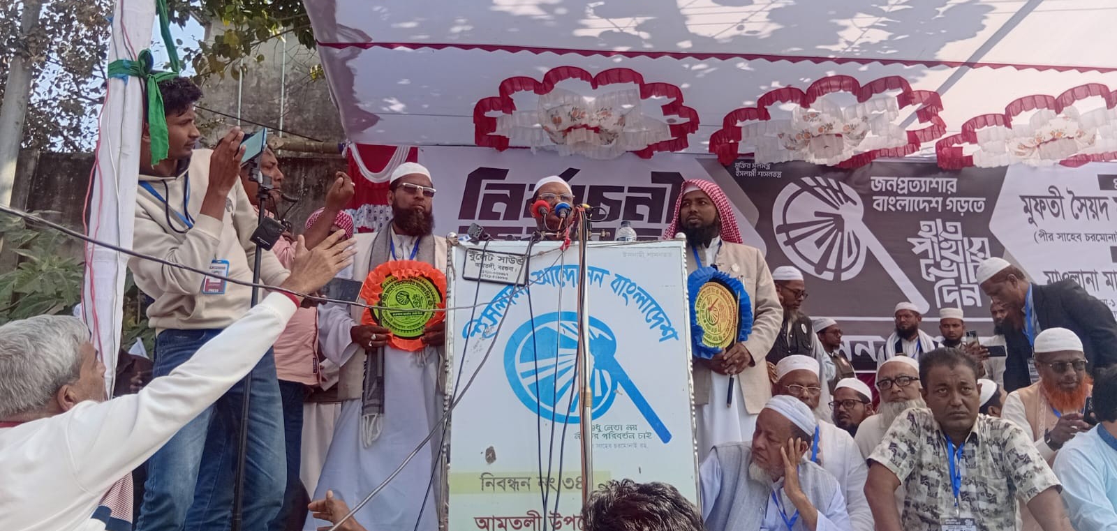 ইসলামী আন্দোলন বাংলাদেশ দল বরগুনা-১ আসনের প্রার্থী মাওলানা মাহমুদুল হোসাইন অলিউল্লাহর সভাপতিত্বে জনসভায় আরো বক্তব্য রাখেন ইসলামী আন্দোলন বাংলাদেশ প্রেসিডিয়াম সদস্য অধ্যাপক আসমত আলী আকন, অধ্যাপক মাহবুবুর রহমান, বরগুনা-২ আসনের প্রার্থী মিজানুর রহমান কাসেমী, কেন্দ্রীয় সহ-প্রচার সম্পাদক কেএম শরিয়ত উল্লাহ, মুফতি হাবিবুর রহমান, আমতলী উপজেলা শাখার সভাপতি মাওলানা ওমর ফারুক জেহাদী, যুগ্ম সম্পাদক মাওলানা মোঃ রবিউল আলম, সহকারী সম্পাদক মাওলানা রেজাউল করিম আকন, বরগুনা জেলা সাংগঠনিক সম্পাদক মাওলানা সাইদুল ইসলাম ও আমতলী উপজেলা শাখার সাধারণ সম্পাদক গাজী মোঃ বায়েজিদ প্রমুখ।