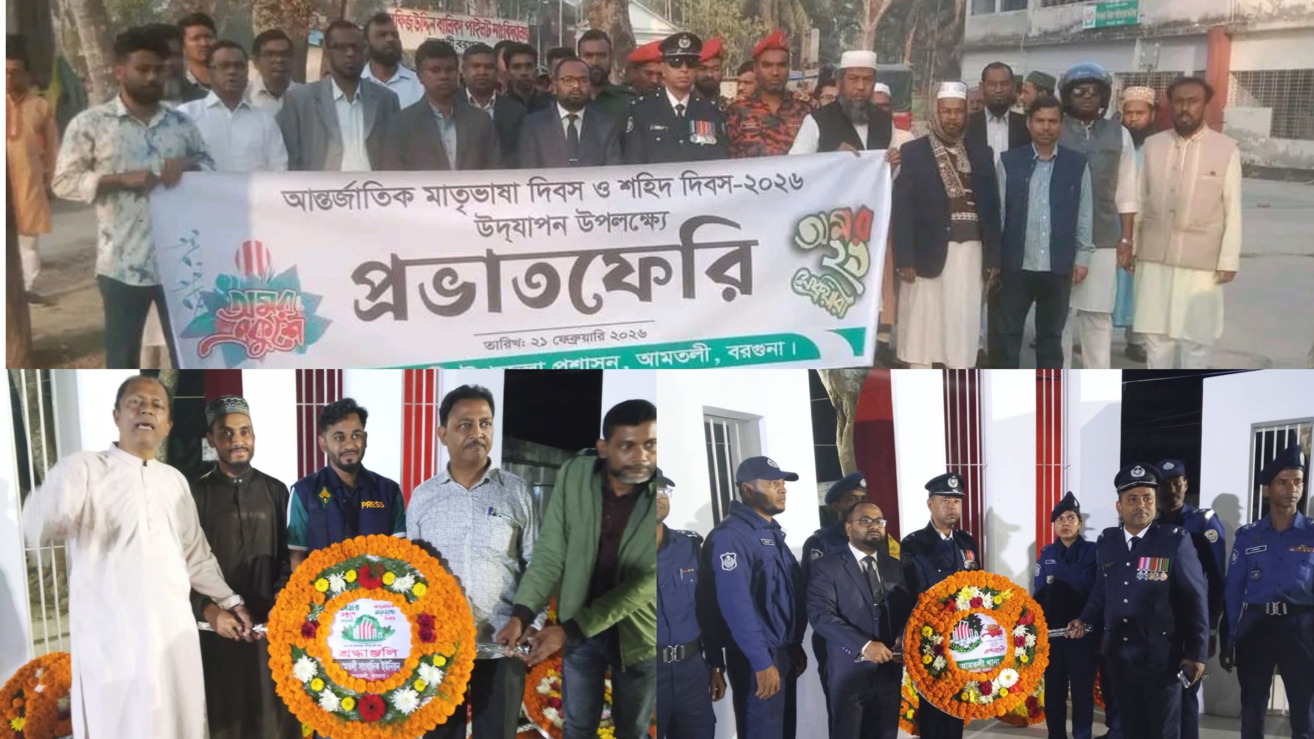শুক্রবার রাত ১২ টা ১ মিনিটে উপজেলা নির্বাহী অফিসার মুহাম্মদ জাফর আরিফ চৌধুরীর নেতৃত্বে উপজেলা পরিষদ প্রাঙ্গণের শহীদ মিনারে পুস্পস্তবক অর্পণ করা হয়। এ সময় আমতলী সাংবাদিক ইউনিয়ন, বাংলাদেশ জাতীয়তাবাদী দল-বিএনপি, এনসিপি, গণ অধিকারসহ বিভিন্ন শিক্ষা প্রতিষ্ঠান, সামাজিক -সাংস্কৃতিক সংগঠনের পক্ষে পুস্পস্তবক অর্পণ করা হয়েছে। পরে শহীদদের স্মরণে দোয়া মোনাজাত করা হয়। শনিবার প্রভাতে উপজেলা প্রশাসনের উদ্যোগে প্রভাত ফেরী বের করা হয়। প্রভাত ফেরি শহরের প্রধান প্রধান সড়ক প্রদক্ষিণ করে। পরে উপজেলা পরিষদ মিলনায়তনে আলোচনা সভা অনুষ্ঠিত হয়। উপজেলা নির্বাহী অফিসার মুহাম্মদ জাফর আরিফ চৌধুরীর সভাপতিত্বে সভায় বক্তব্য রাখেন, আমতলী সরকারী কলেজের অধ্যক্ষ ড. মোঃ জামাল হোসেন, ডাঃ চিন্ময় হাওলাদার, অভিজিত সাহা, ওসি মোহাম্মদ জাহাঙ্গীর হোসেন, প্রধান শিক্ষক মোঃ আনোয়ারুল কবির ও ইসলামী আন্দোলন বাংলাদেশ পৌর সভাপতি কামরুজ্জামান প্রমুখ।