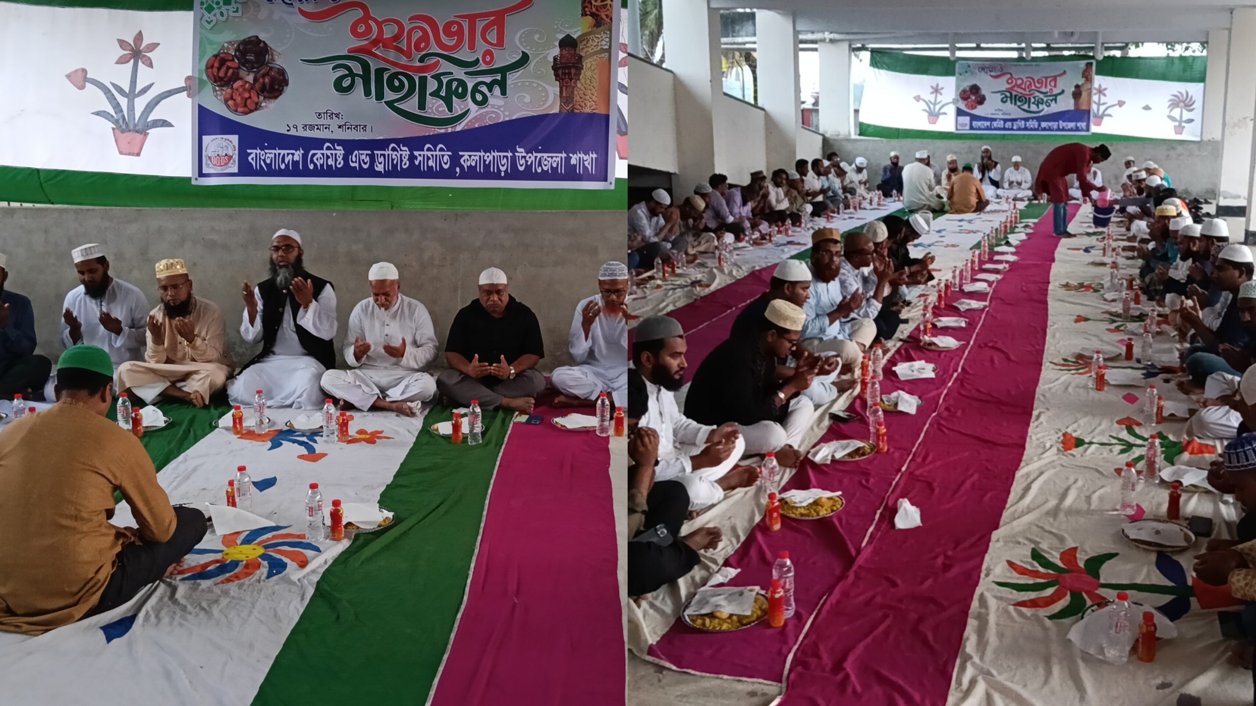 কলাপাড়া প্রতিনিধি: পটুয়াখালীর কলাপাড়ায় বাংলাদেশ কেমিস্ট এন্ড ড্রাগিস্ট সমিতি, কলাপাড়া উপজেলা শাখার উদ্যোগে দোয়া ও ইফতার মাহফিল অনুষ্ঠিত হয়েছে। শনিবার (৭ মার্চ) খেপুপাড়া সরকারি মডেল মাধ্যমিক বিদ্যালয়ের মাঠে এ দোয়া ও ইফতার মাহফিলের আয়োজন করা হয়।