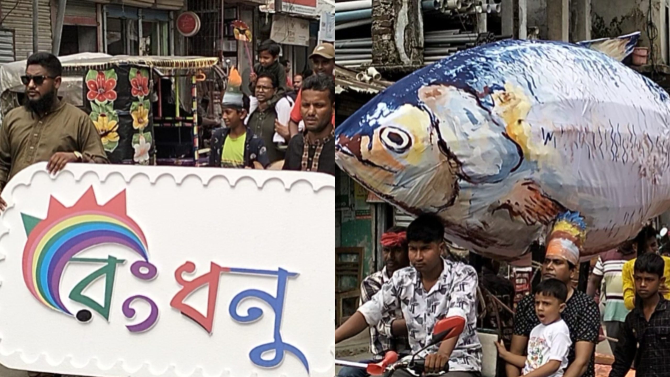 শোভাযাত্রার প্রধান আকর্ষণ ছিল প্রায় ১৪ ফুট লম্বা ইলিশ মাছের প্রতিকৃতি। এছাড়া ঘোড়া, বাংলাদেশের জাতীয় পশু রয়েল বেঙ্গল টাইগার, শান্তির প্রতীক পায়রা, বিলুপ্তপ্রায় পেঁচা ও বকের নান্দনিক প্রতিরূপ দর্শনার্থীদের মুগ্ধ করে। লোকজ ঐতিহ্যের অংশ হিসেবে প্রদর্শিত হয় কৃষকের হারিয়ে যাওয়া জোংরা, লাঙ্গল-জোয়াল, দোতারা, জেলেদের জাল এবং গ্রামীণ জীবনের পুরনো অনুষঙ্গ হুক্কা।