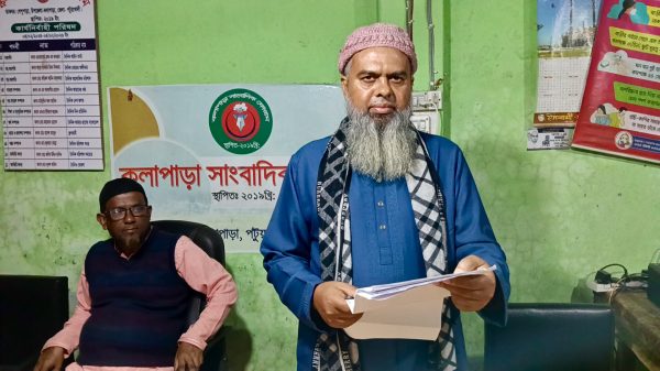 কলাপাড়া প্রতিনিধিঃ কলাপাড়া পৌর শহরের কলেজ রোড এলাকায় নিজেদের মালিকানাধীন জমিতে বৈধভাবে বেড়া দেওয়ার দাবি তুলে সংবাদ সম্মেলন করেছেন মিজানুর রহমান। রোববার বেলা ১১টায় তিনি কলাপাড়া সাংবাদিক ফোরাম কার্যালয়ে এ সংবাদ আরও পড়ুন
