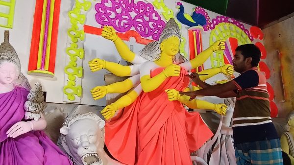 চঞ্চল সাহাঃ কলাপাড়ায় শারদীয় দুর্গা পুজা উপলক্ষে চলছে সাজ সজ্জার কাজ। সকল মন্দির গুলোতে প্রতিমার গায়ে উঠেছে রং। মন্দির ক্যাম্পাসে ডেকরেটরের লোকজন পুরোদমে চালাচ্ছে বিভিন্ন রংয়ের আলোক সজ্জার কাজ। কলাপাড়া আরও পড়ুন