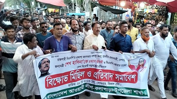 বিশ্বাস শিহাব পারভেজ মিঠুঃ রাজশাহীতে বিএনপির সমাবেশে প্রধানমন্ত্রী শেখ হাসিনাকে হত্যার হুমকি ও বিএনপি জামাত চক্রের দেশবিরোধী সন্ত্রাস ষড়যন্ত্রের প্রতিবাদে পটুয়াখালীর কলাপাড়ায় বিশাল বিক্ষোভ মিছিল ও প্রতিবাদ সমাবেশ অনুষ্ঠিত হয়েছে। আরও পড়ুন