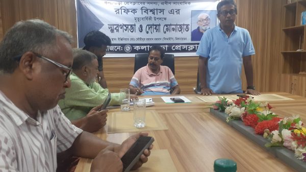 আপন নিউজ ডেস্কঃ কলাপাড়া প্রেসক্লাবের প্রবীণ সাংবাদিক রফিক বিশ্বাসের মৃত্যুবার্ষিকী উপলক্ষে স্মরণ সভা অনুষ্ঠিত হয়েছে। বুধবার রাতে প্রেসক্লাবের ইঞ্জিনিয়ার মো. তৌহিদুর রহমান মিলনায়তনে প্রেস ক্লাবের আয়োজনে এ স্মরণ সভা অনুষ্ঠিত আরও পড়ুন