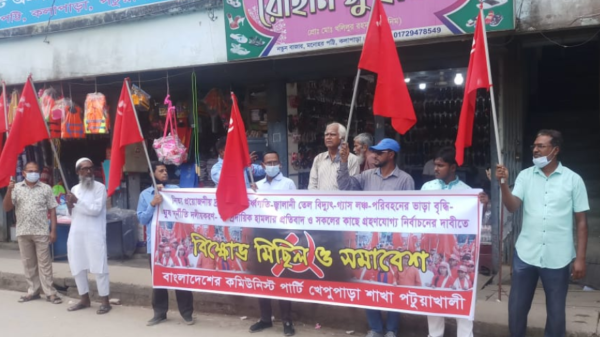 চঞ্চল সাহাঃ কলাপাড়ায় শনিবার (১৩ নভেম্বর) বেলা ১১ টার দিকে পৌর শহরের সুরেন্দ্র মোহন চৌধুরী সড়কের মনোহরীপট্রিতে কমিউনিষ্ট পার্টি খেপুপাড়া শাখার উদ্যোগে বিক্ষোভ মিছিল ও সমাবেশ অনুষ্ঠিত হয়েছে। তেল গ্যাস আরও পড়ুন