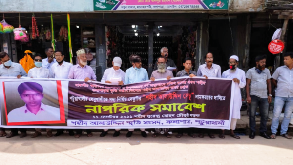 চঞ্চল সাহা, আপন নিউজঃ বরিশাল-পটুয়াখালী সড়কের লেবুখালীতে নবনির্মিত সেতুটি ’শহীদ আলাউদ্দিন সেতু” নামকরনের দাবীতে কলাপাড়ায় এক মানববন্ধন ও সমাবেশ অনুষ্ঠিত হয়েছে। শনিবার (১১ সেপ্টেম্বর) বেলা ১১ টার দিকে সুরেন্দ্র মোহন আরও পড়ুন
