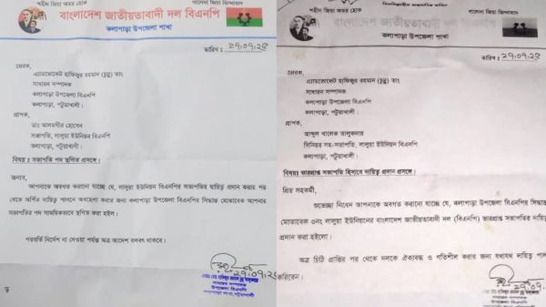 বিশ্বাস শিহাব পারভেজ মিঠুঃ লালুয়া ইউনিয়ন বিএনপির সভাপতির পদ সাময়িকভাবে স্থগিত করা হয়েছে। কলাপাড়া উপজেলা বিএনপির সাধারণ সম্পাদক অ্যাডভোকেট হাফিজুর রহমান (চুন্নু) স্বাক্ষরিত এক প্রেস নোটে এ সিদ্ধান্তের কথা জানানো হয়। আরও পড়ুন