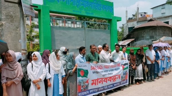আপন নিউজ অফিসঃ ফি’লি’স্তি’নে চলমান নৃশংস গণহত্যা ও গাজায় বর্বরোচিত হামলার প্রতিবাদে মানববন্ধন করেছে কলাপাড়া মহিলা ডিগ্রি কলেজের শিক্ষকবৃন্দ। সোমবার (৭ এপ্রিল) দুপুরে কলেজের সামনে এই মানববন্ধন অনুষ্ঠিত হয়। মানববন্ধনে আরও পড়ুন
