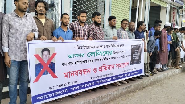 আপন নিউজ অফিসঃ কলাপাড়া হাসপাতালে দীর্ঘ প্রায় ১৪ বছর চাকরি করা চিকিৎসক ডাঃ জে এইচ খান লেলিনের অপসারণের দাবিতে মানববন্ধন সমাবেশ করা হয়েছে। বুধবার বেলা ১১ টায় কলাপাড়া প্রেসক্লাব চত্বরে আরও পড়ুন