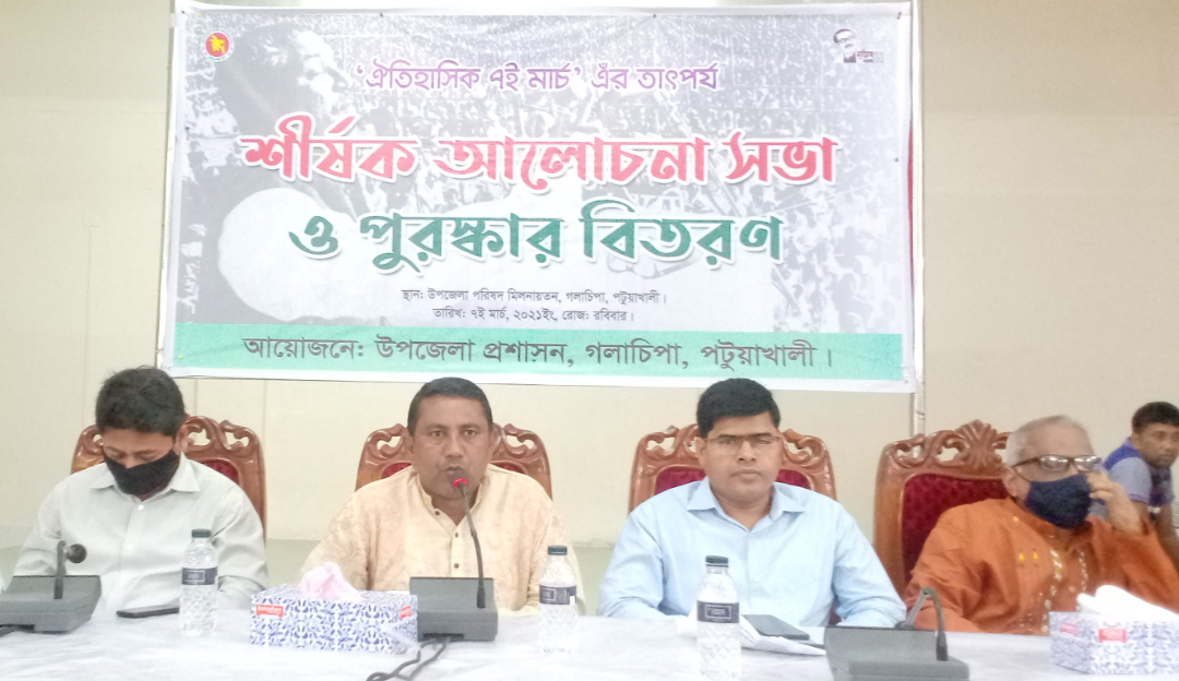 সঞ্জিব দাস, গলাচিপাঃ পটুয়াখালীর গলাচিপায় নানা আয়োজনে যথাযোগ্য মর্যাদায় ঐতিহাসিক ৭ মার্চ উদ্যাপিত হয়েছে। দিবসটি উদ্যাপন উপলক্ষে উপজেলা প্রশাসন বঙ্গবন্ধুর প্রতিকৃতিতে পুষ্পমাল্য অর্পণ, বঙ্গবন্ধুর ঐতিহাসিক ৭ মার্চের ভাষণ প্রচার, আলোচনা আরও পড়ুন