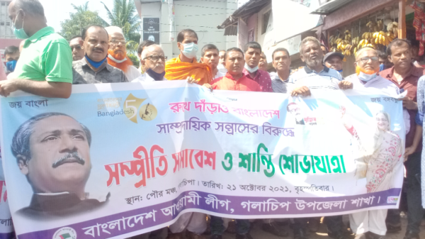সঞ্জিব দাস, গলাচিপাঃ ‘রুখে দাঁড়াও বাংলাদেশ সাম্প্রদায়িক সন্ত্রাসের বিরুদ্ধে’ এ শ্লোগানকে সামনে রেখে গলাচিপায় উপজেলা আওয়ামী লীগের উদ্যোগে দলমত নির্বিশেষে সম্প্রীতি সমাবেশ ও শান্তি শোভাযাত্রার আয়োজন করা হয়েছে। বৃহস্পতিবার বেলা আরও পড়ুন