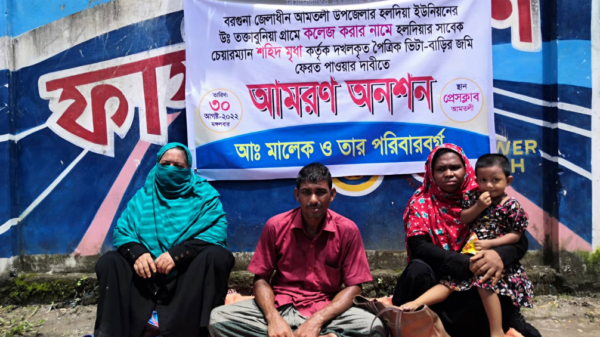 আমতলী প্রতিনিধি।। আমতলী উপজেলার হলদিয়া ইউনিয়নের উত্তর তক্তাবুনিয়া গ্রামের মোঃ আব্দুল মালেক বিশ্বাস ও তার পরিবার পৈত্রিক ভিটে ও জমি উদ্ধারের দাবীতে আমরণ অনশনে বসেছে। মঙ্গলবার বেলা ১১ টার দিকে আরও পড়ুন