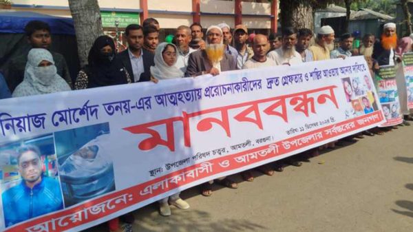 আমতলী প্রতিনিধিঃ আমতলীতে ব্যবসায়ী নিয়াজ মোর্শ্বেদ তনয়ের আ-ত্মহ’ত্যা প্ররোচনার ঘটনায় জড়িতদের গ্রেপ্তার ও বিচার দাবীতে আমতলীতে মানববন্ধন ও বিক্ষোভ সমাবেশ করা হয়েছে। বুধবার বেলা সাড়ে ১০ টায় উপজেলা পরিষদ প্রাঙ্গণে আরও পড়ুন